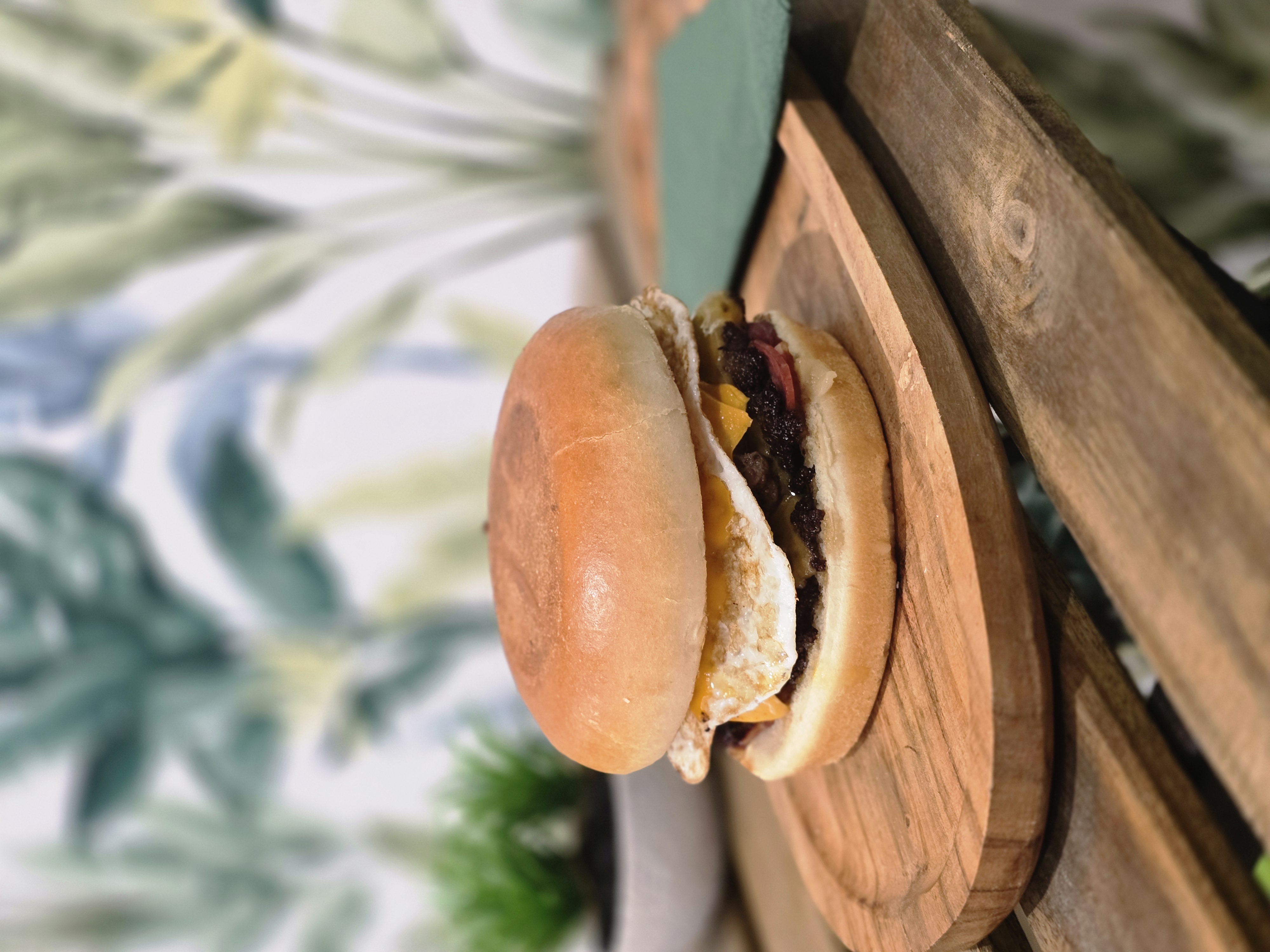 (TARJA,VÖRÖS CHEDDAR SAJT,TÜKÖRTOJÁS,CHEDDAR SAJT SZÓSZ,KONFITÁLT FOKHAGYMA,100% MARHAHÚS,+(menü: kisadag sült krumpli+0,5l coca cola 750ft+50ft drs))